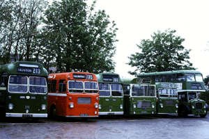 Owner : Western National/Devon General 661 (second from left) Location : Taunton Bus Station Date : 1975