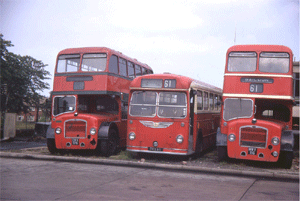 Owner : West Yorkshire DX32, SUG29 & DX7 (left to right) Location : Grove Park depot, Harrogate Date : September 1970